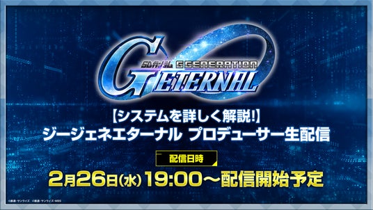 株式会社バンダイナムコエンターテインメントは、2025年2月26日(水)にスマートフォンアプリゲーム『SDガンダム ジージェネレーション エターナル』の公式生配信番組「システムを詳しく解説!プロデューサー生配信」を配信することを決定いたしました。