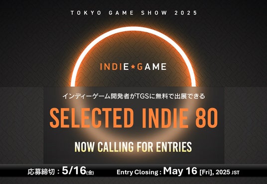 一般社団法人コンピュータエンターテインメント協会(略称:CESA、会長:󠄀󠄀辻本 春弘)は、東京ゲームショウ2025 にて、インディーゲーム開発者が活躍できるプラットフォームを提供するとともに、グローバルなゲーム業界の成長に寄与することを目的とした「SELECTED INDIE 80」を今年も実施いたします。「SELECTED INDIE80」はインディーゲーム開発者が無料で出展可能な枠になります。本日より応募開始となりますので奮ってご応募ください。専用Web エントリーフォームから申し込みが可能で、応募締切日は5月16日(金)23時59分<日本時間>です。