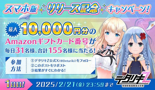 2月21日(金)より、毎日抽選31名にAmazonギフトカード番号がもらえるキャンペーンを公式X(@Detariki)にて実施中です!