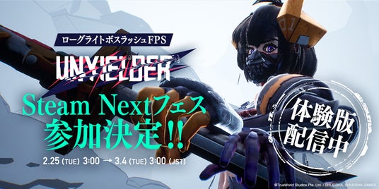 株式会社集英社ゲームズ(本社:東京都千代田区、以下 集英社ゲームズ)は、2025年春に発売を予定している、ローグライトボスラッシュFPS『UNYIELDER(アンイールダー)』の無料体験版である「プロローグデモ」を、本日2月22日にSteam(R)にて配信したことを発表いたしました。「プロローグデモ」は、昨年12月に配信された「コンバットデモ」から内容が一新され、これまで公開されていなかったストーリーや、過激さが増したバトル要素など『UNYIELDER』の製品版に含まれるコンテンツの一部を体験することができます。また、『UNYIELDER』「プロローグデモ」は、2月24日から3月4日まで開催される「Steam Next フェス 2月エディション」への出展も決定しており、出展を記念した新トレーラーも本日公開したことをお知らせいたします。