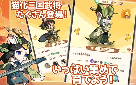 ■『ねこ天下~我がにゃを轟かす~』は猫化した三国志武将を集めて育てて戦える放置系RPGです
