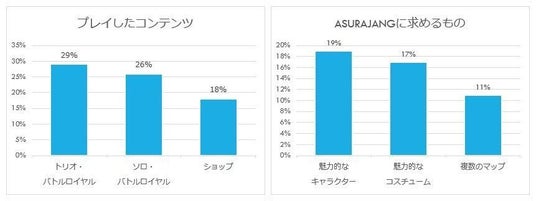 なお、今後の改善点として「魅力的なキャラクター」(19%)、「魅力的なコスチューム」(17%)、「複数のマップ」(11%)を求める声が多く寄せられました。