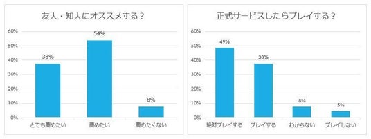 ・正式サービス後のプレイ意向:「絶対プレイしたい」49%、「プレイしたい」38%