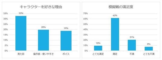 ・キャラクターの魅力:デザイン(33%)、操作性(20%)、ボイス(19%)