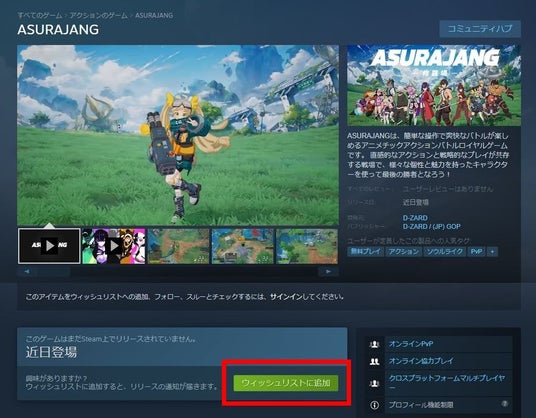 Steamにログイン後、『ASURAJANG』公式Steamストアページにある「ウィッシュリストに追加」ボタンをクリックすることで登録を行えます。ウィッシュリストに登録いただいた方には、正式リリース時に通知メールが届きます。