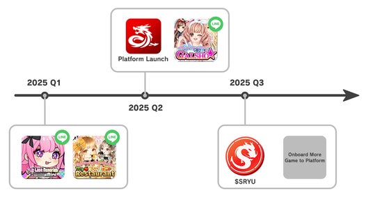 本トークンは、高品質のゲームを結び付けて新しい価値を生み出し、ゲームエコシステムの成長を促進することを目的としています。使用可能なゲームは、3月7日にリリースされた『Last Memories mini』だけでなく、同じくLINE mini Dapp上で今後ローンチされるミニアプリ『My Restaurant2』、『GALSHO☆』や、今後ローンチされる他プラットフォームにおけるゲーム群など、様々なアプリが対象となります。本プロジェクトのゲームをプレイすることで、2025年第三四半期でのTGEを予定している$SRYUのエアドロップを獲得することが可能です。