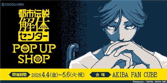株式会社集英社ゲームズ(本社:東京都千代田区、以下 集英社ゲームズ)は、4月4日(金)から5月6日(火・祝)の期間、『都市伝説解体センター POP UP SHOP』を東京・秋葉原の「AKIBA FAN CUBE」にて開催することを発表いたしました。『都市伝説解体センター POP UP SHOP』では、廻屋渉・福来あざみ・ジャスミンのアクリルスタンドや、ゲーム内に登場する「イルミナカード」をモチーフとしたトレーディングカードなどを販売いたします。なお、『都市伝説解体センター POP UP SHOP』で販売するグッズにつきましては、並行して、4月4日(金)より受注販売が開始される予定となっています。