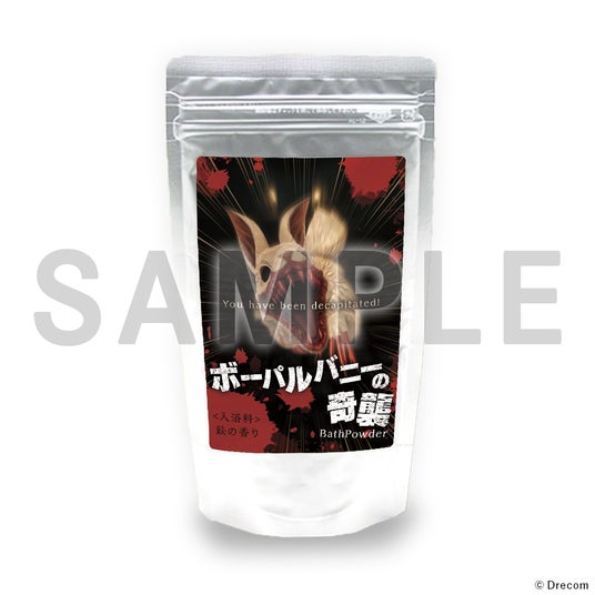 奈落でボーパルバニーに襲われる様をイメージした入浴料です。溶かすと湯色が変化し、鉄の香りが広がります。死と隣り合わせの危険(リスク)漂うバスタイムをお楽しみください。