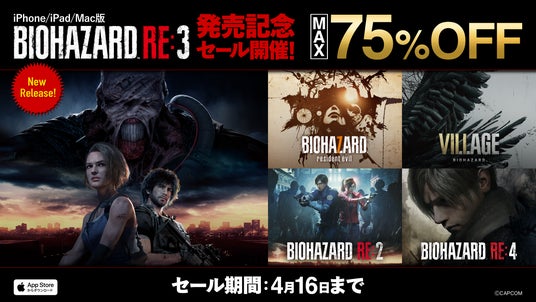 iPhone/iPad/Mac版『バイオハザード RE:3』 発売を記念して「バイオハザード」シリーズのセールも開催!