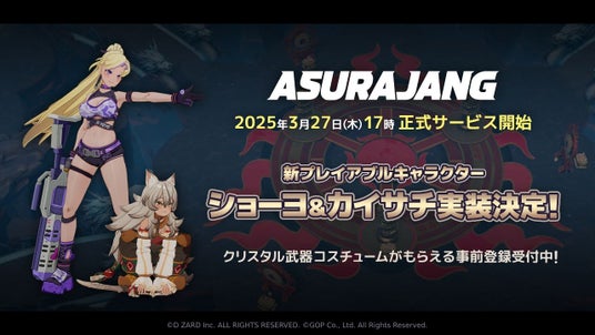 『ASURAJANG』では、3月27日(木)の正式サービス開始に伴い、新たなプレイアブルキャラクター「ショーヨ」と「カイサチ」2体の追加実装を決定いたしました。