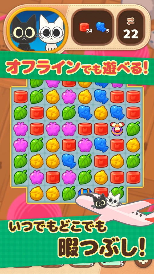 かわいいネコと一緒に遊べる!お手軽かんたんマッチ3パズルゲーム!