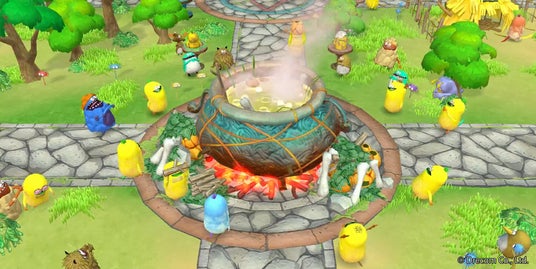 ミームと一緒に『世界樹』を冒険して『ごちそう』を作ったり、拠点に建築できる施設の材料を集めて村を発展させましょう!