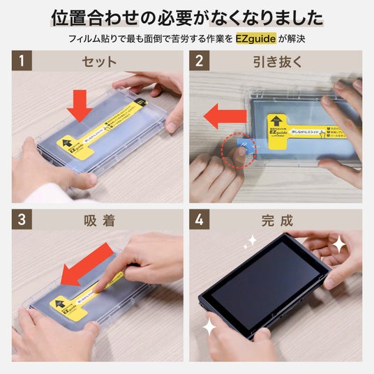 子供がSwitchの保護ガラスにヒビを入れてしまい、不器用な私は貼り直しをすることが少し憂鬱でした。 できるだけラクそうなもの…と検索したらこちらが出てきました。 確かにラクだしキレイです!