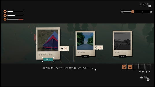 道を進む途中で食材を手に入れることがあり、料理に使うことができます。