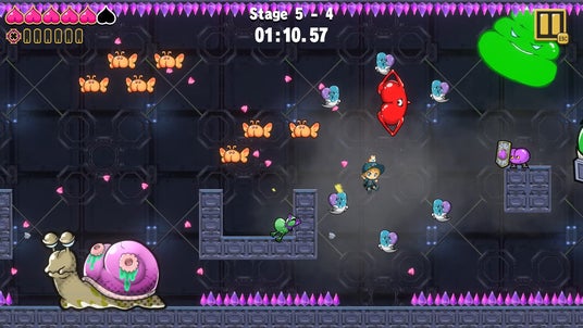 全25ステージに待ち受けるのは、手ごわい敵と巧妙なギミックの数々。クリアーするには何度もトライが必要になるかもしれません。