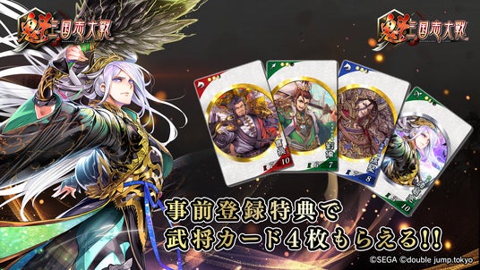 株式会社セガより『三国志大戦』のライセンス許諾を受け、double jump.tokyoが開発する軍勢カードバトルゲーム。 アーケード版『三国志大戦』に登場した武将はもちろん、『魁 三国志大戦』のために描きおこされた新しい武将たちも登場いたします。