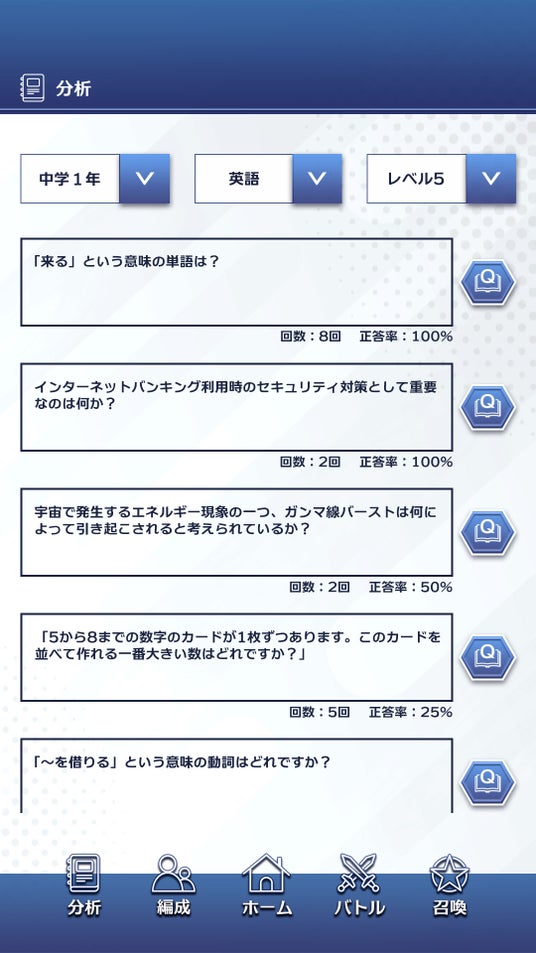 アプリには魅力的なキャラクター育成の要素も盛り込まれています。問題を解くことでキャラクターが成長し、ガチャやドロップなどゲーム的な要素を楽しみながら勉強を続けられます。「できることが増えていく」「自分のキャラクターが強くなる」といった体験を通じて、お子様の自己肯定感と達成感を高めます。