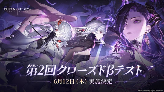 2025年6月12日(木)より『デュエットナイトアビス』CBT2を開催することが決定いたしました。前回の第1回クローズドβテストに大幅なアップデートを加え、既存のバトルシステムや育成システムの改善や、新規プレイアブルキャラクター、メインストーリーの新章を実装したバージョンとなっております。本作の特徴のひとつである「主人公選択システム」も初公開となります。
