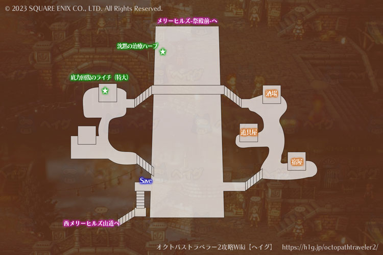 【オクトパストラベラー2】クレストランド「メリーヒルズ」のマップ情報、宝箱、出現モンスターなど各種情報をまとめています。