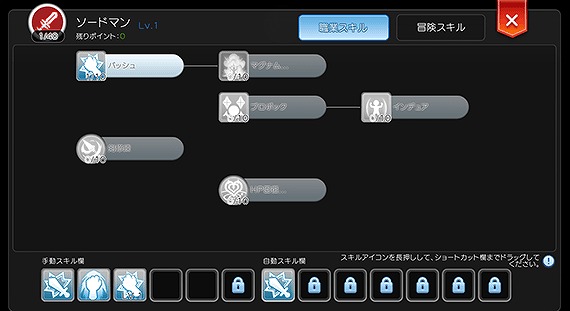 なお、スキルのショートカット欄は「手動スキル欄」と「自動スキル欄」の2つに分かれています。
