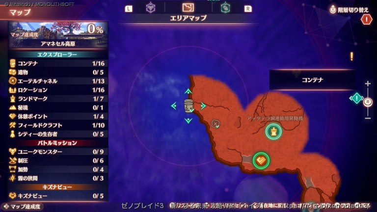 【ゼノブレイド3】新たなる未来のマップ「アマネセル高原」のコンテナやランドマーク、キズナビューなどの各種情報をまとめています。