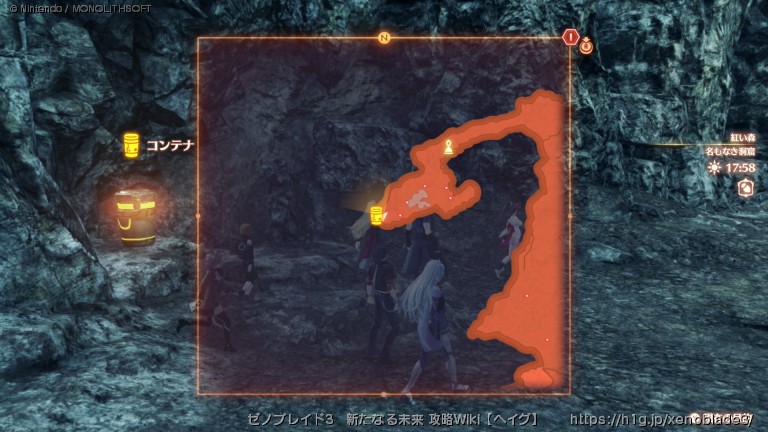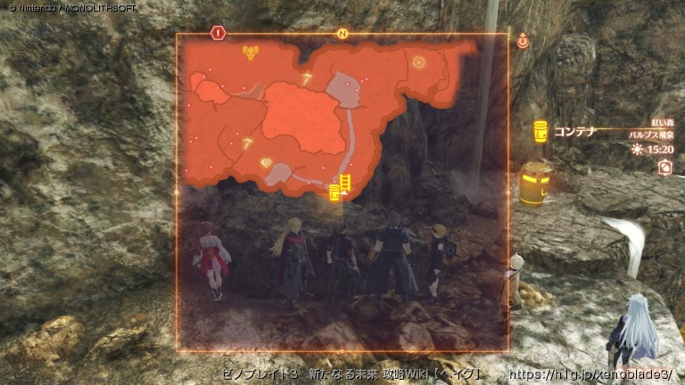 【ゼノブレイド3】マップ「紅い森」のコンテナやランドマーク、キズナビューなどの各種情報をまとめています。