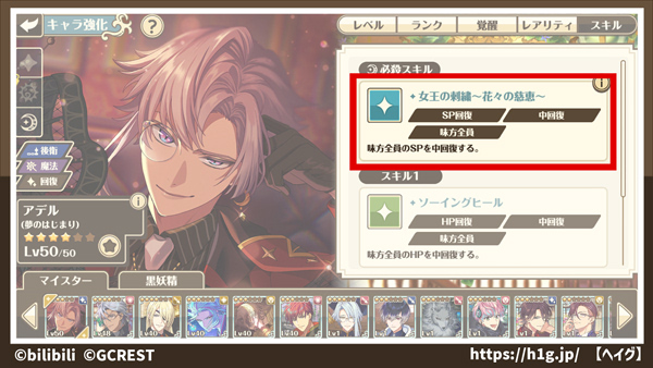 | ・発動頻度が低く、SP回復量も少なめ ・アデル(夢のはじまり)やイツキ(夢のはじまり)の方が回復量が多いため、SP回復担当としては活躍しづらい | ||