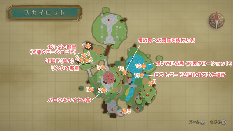 11.ロフトバードが囚われていた場所![]() | 12.【要クローショット】滝の上の島![]() |